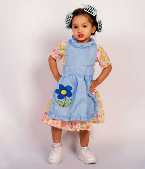 - 👓 Incluye hermoso vestido de flores y delantal azul.